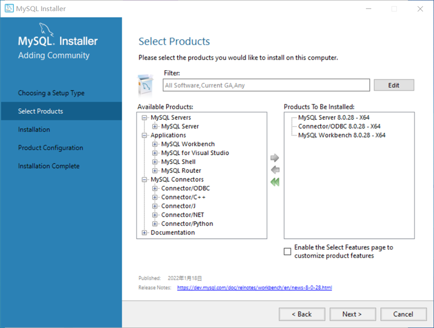 我所使用的是QT Creator5.9.0作为开发平台,连接读取Mysql中储存的数据。即使下载了x64的QT,其中自带的gcc编译器MinGW只有32位的版本,因此必须安装32位的Mysql才能保证位数对应。但是官网上的Mysql虽然标了x86版本(32位),但是在后续安装组件的过程中,只有x64版本可选,因此位数还是不对应的。所以另外找到了32位Mysql的安装包自行编译文件才安装成功。下图中若没有ODBC和图形界面的需求,可以只下载MySQL Server这个组件,我个人比较倾向于使用命令行而不是图形界面运行Mysql。