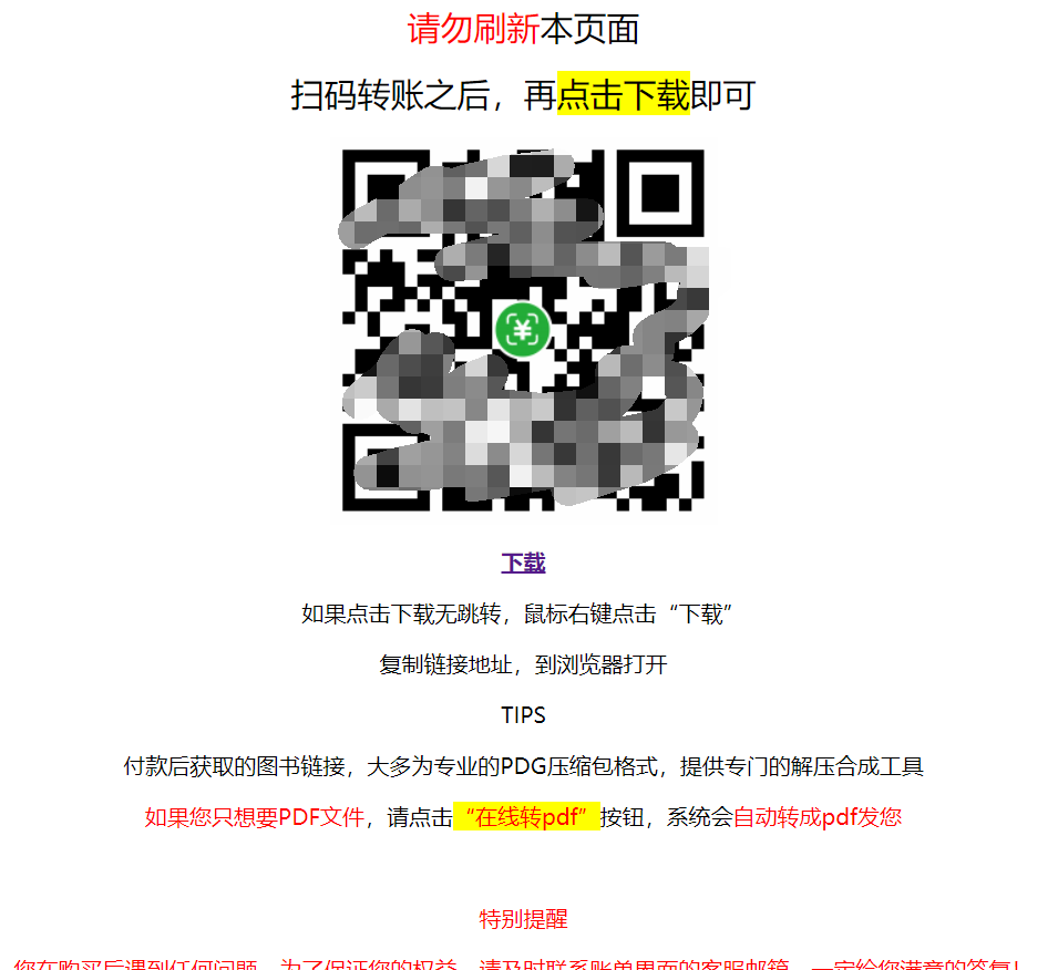 我通常使用第一个网站,建议使用ISBN编号(可以去某宝看产品参数),书名搜索可能有编者和版本的出入。在安装了这个脚本之后,可以看到有一行绿色的“存货查询”的字样,点入就可以看到一个很辣眼睛的付款页面,扫码支付即可。这个方法可以获得一个压缩版本也可以获得pdf版本。