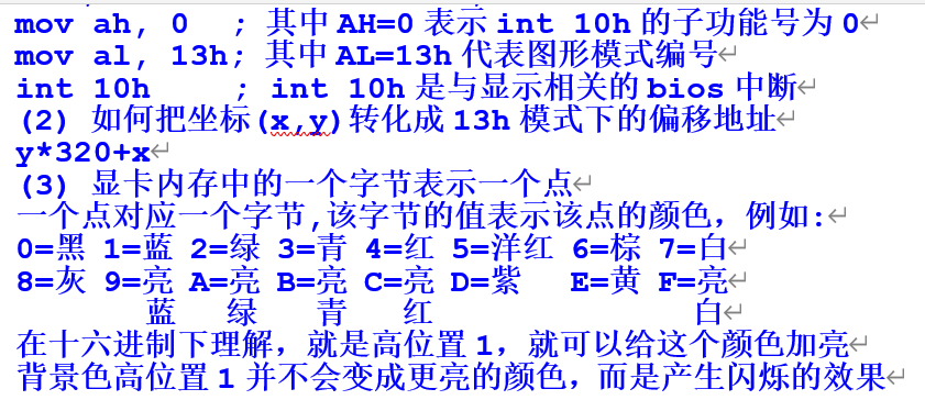 - 为达到清屏效果可以调用int10h,不清屏的话再加上一开始测试数据比较乱真的很掉san。。代码为:mov ax,03h int 10h