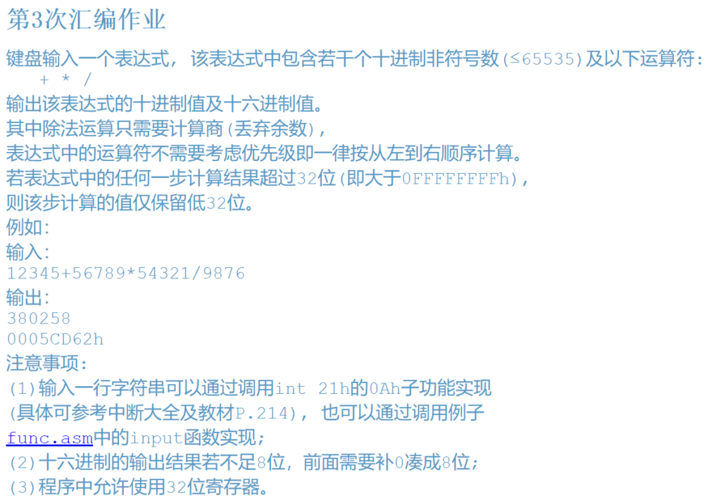 - 关于输出函数,十进制输出就是逆向一下输入部分,除以10后把余数依次压入堆栈,最后统一输出,十六进制输出可以四位四位转换,用左移四位之后和0Fh求与的方式逐一转换,总体上不是很难