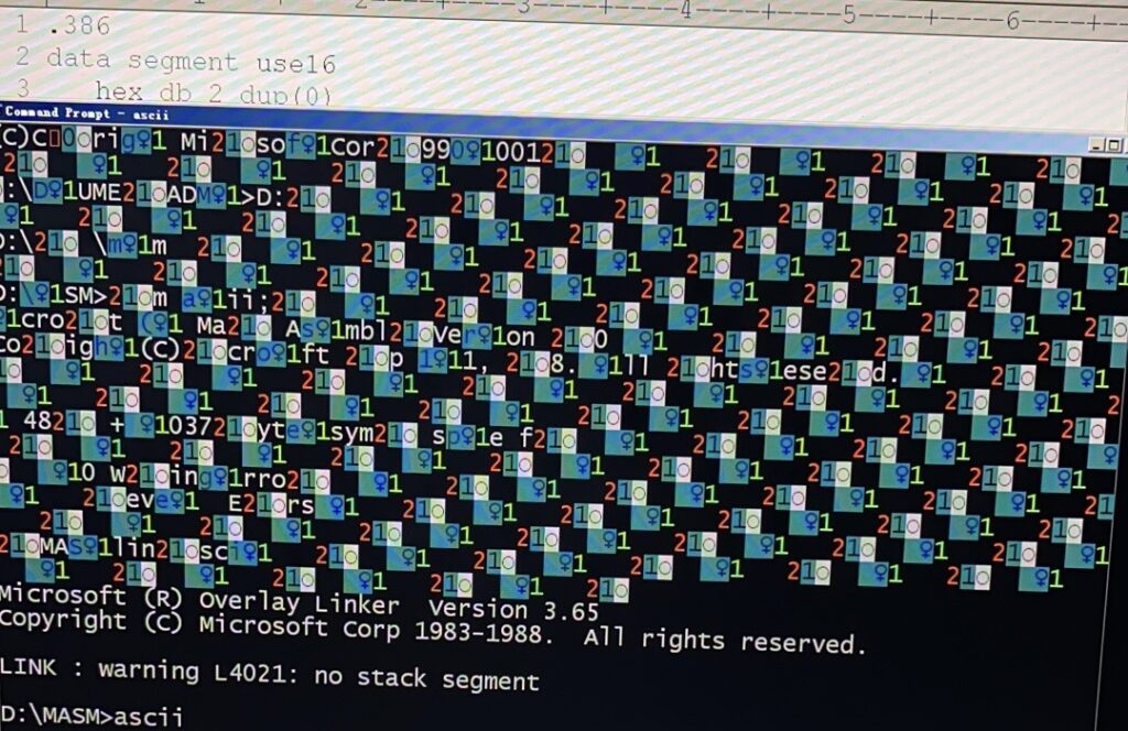 - 关于rol循环左移,这里用到了rol al,4 直接masm编译是会报错的,但是写四遍rol al,1不会报错,这时候在程序最开始segment前面加上.386,并且在每个segment后面加上use16,表示我们的电脑是可以十六进制计算的,就可以通过编译了。